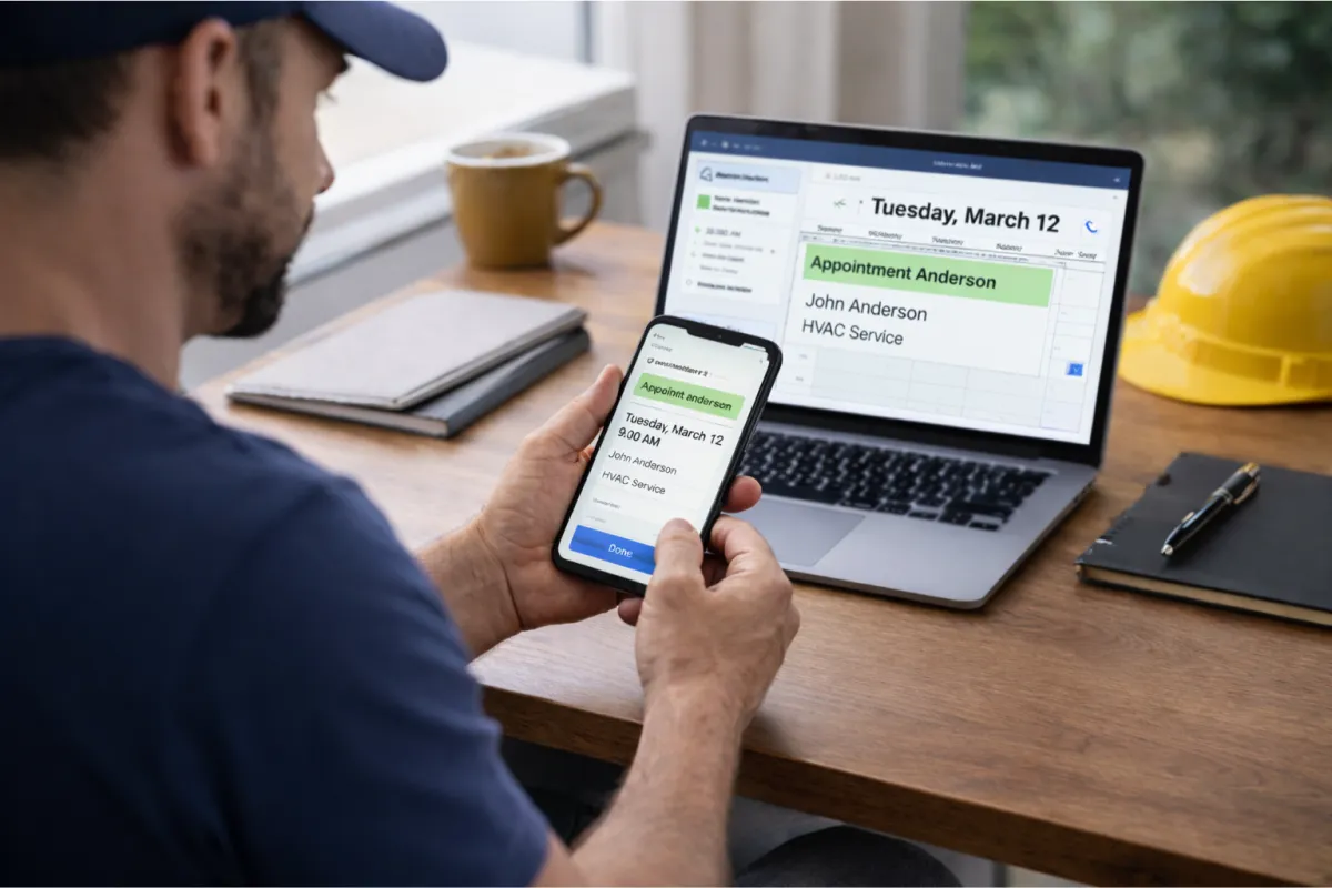 Appointments follow your business hours, service areas, job types, and capacity automatically.